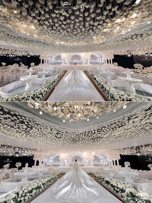 一直到婚礼开始,钟乐倾换上主婚纱,一身宫廷公主般的婚纱,加上她的冷白皮,顿时给人的感觉就像是从古欧神话里走出来的女王;闵玧其也在此时换上了西装,两个冷白皮般配级了