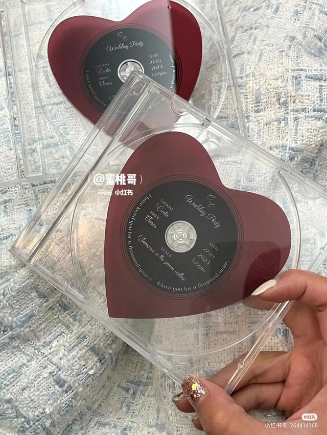 闵玧其和钟乐倾都是音乐制作人,婚礼邀请函设计的也是CD样式的,当初闵玧其一眼就看中了这一个款式,当然钟乐倾也是