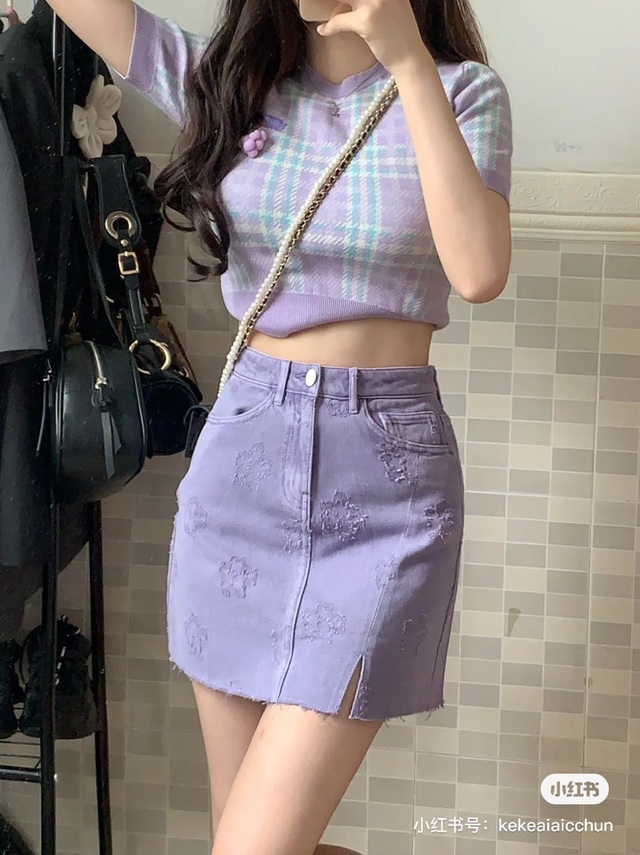 说实话这是第一次看到她这种风格,不过紫色很衬她,更白了