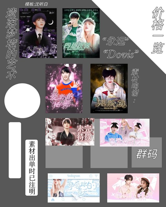 作者_汐子🎉接单 🎊接包养,全永60r含加急90r 封全永限时[30r含加急40r] 单类型包养只需10r含加急15r 包养其它的私 单 1张/r 加急统一2r m业务有: 立绘/溶图/伪澄/简约〈电脑简约/轻色简约/普通简约〉/自定义/模板/字设/字效/********赛博朋克/人物素锦/滤头/立绘处理/生头/溶素/扣立绘/美化二维码/剧情图/代宣/发光/宣传词/宣传图/溶底/op/漫画风溶素 人物处理 立绘 模板/油画风溶素 人物处理 立绘 模板/纯古风封/伪古风封/贴纸/小卡/立体封/油画风封/无人封/吧唧 预览 反馈 二维码↓ 也可加我!! 急用钱啊!!!包养可压榨!*****!!!
