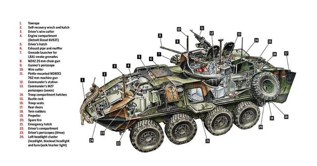 一年后,有七个厂商的八个投标摆在了美国佬的桌子上面,但是经过了第一次筛选后,仅剩下三个厂商的四个投标参加了第二年的试验。不久后,以加拿大通用汽车公司的皮兰哈装甲车方案通过了,一年后便进入到马润的行列,编号为LAV-25。后来也有陆军的(680辆,隔壁马润289辆),只不过,陆军他们不承认这个车的是lav-25()