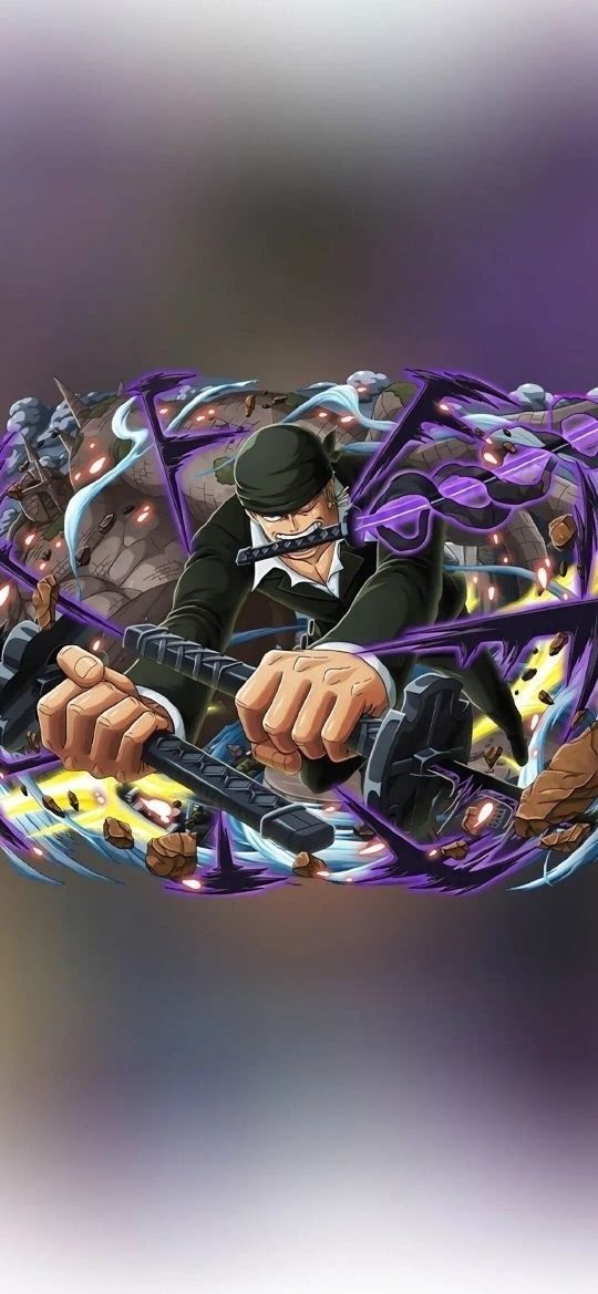 随着光芒消失,露出了一个上身穿着白色短袖下面穿着绿色裤子靴子和绑在手臂上的头巾,耳朵上挂着三颗耳坠 ,腰上插着三把刀的人。此人正是穿越过来的索隆。