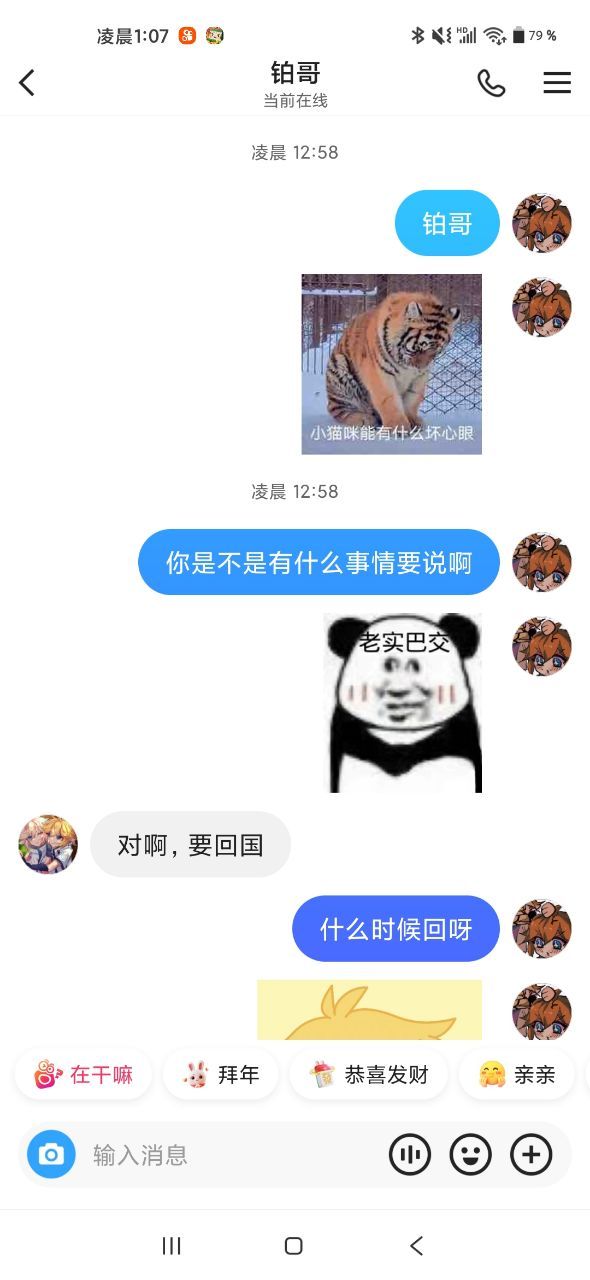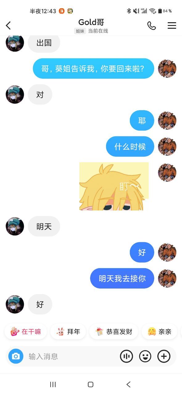 葵好,挂了啊