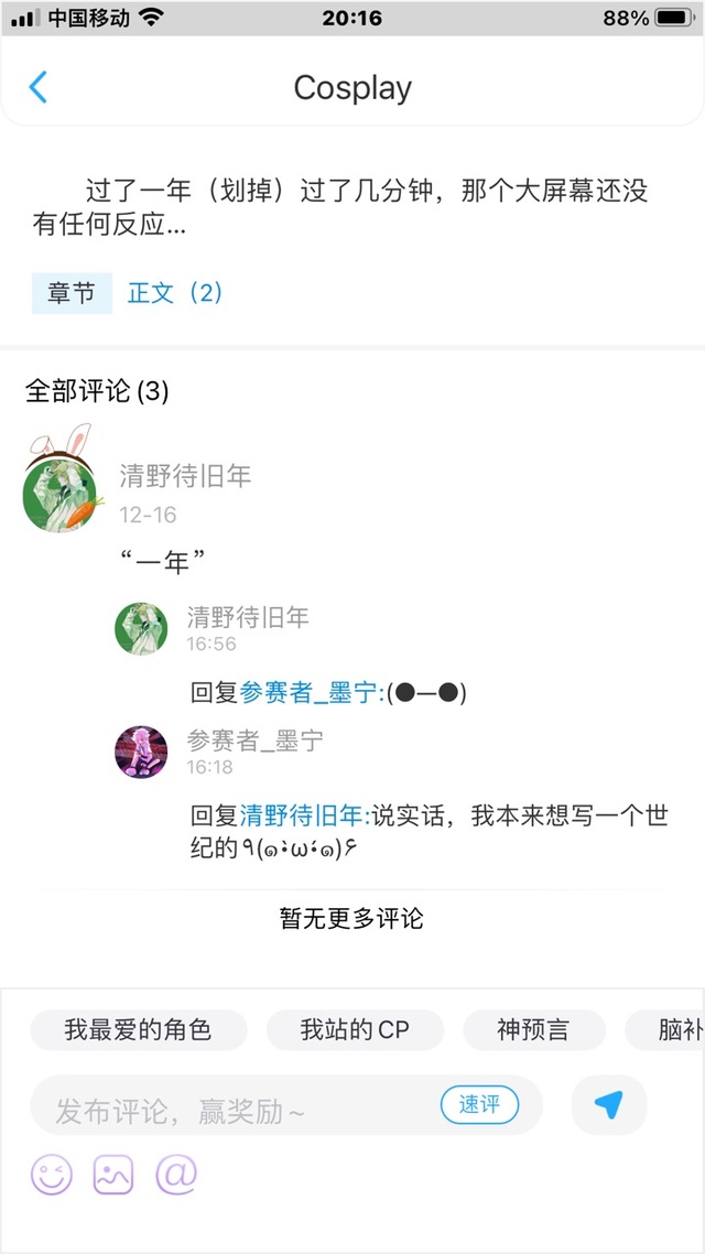 作者放心,因为我拿到手机的时间很短,所以我一般会先想好剧情然后灯拿到手机后再抄上去