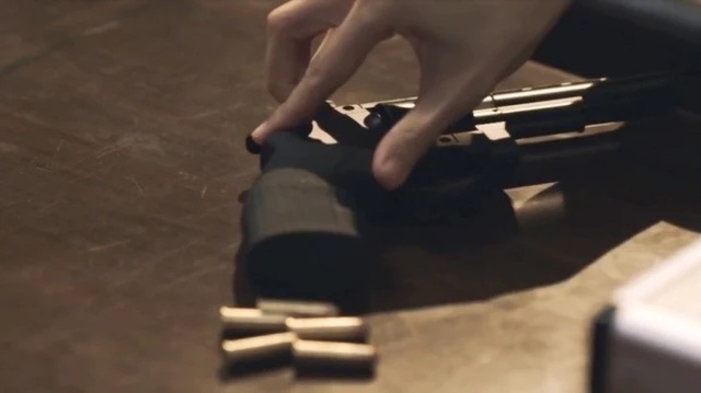 金小姐把手拿包打开,拿出里面的枪把子弹全拿出来扔到了桌子上