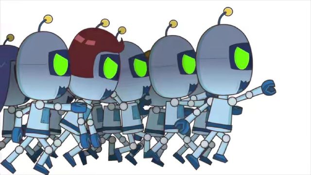 “那些机器人好疯狂。”粗心超人紧张地看着屏幕。
