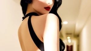 黑色的礼裙将凹凸有致的身材勾勒得完美,黑色的大波浪披散着,妖艳的红唇整个人都透着成熟撩人的韵味。