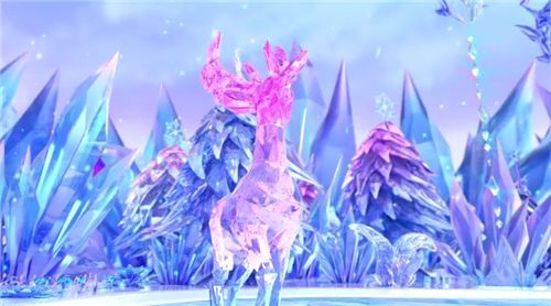 冰晶宫是冰公主的住处,冰晶宫到处都是由冰晶建筑而成,威严但不失美丽,还有小鹿增添了可爱说明冰公主内心也是很小孩子的