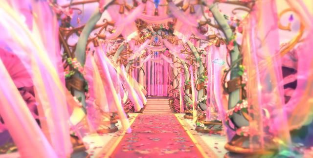 花海潮是灵公主的住处,花朵绚丽多彩,四季如春,还有彩虹做伴,美丽极了,彩带装饰走廊,温风飘来飘去,既神秘又象征着这里的主人很温和