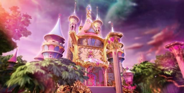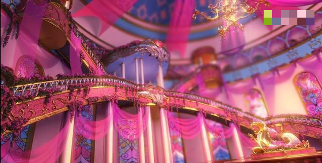 花蕾堡在剧中被称为昔日最繁华的城堡真的是名不虚传,外观繁华交错各色响应,梦幻且美丽,里面两边都是扶梯,相接在一起,像彩虹一样,五彩的玻璃杯阳光照射,五彩的光照射在一起绚丽多姿(玻璃也没找着图片)