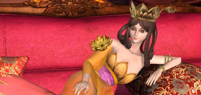金莲公主轻提裙摆,微微欠身