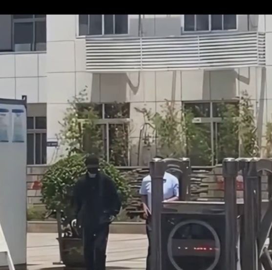 此时,一位母亲正在向自己的儿子招手 可不知道是被谁推了一下 差点摔倒 还好一位先生扶住了他