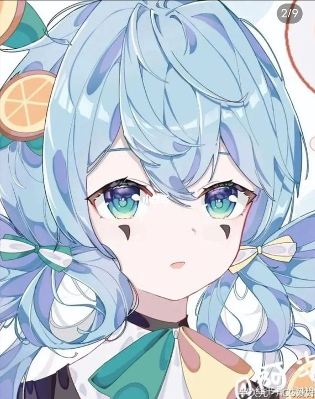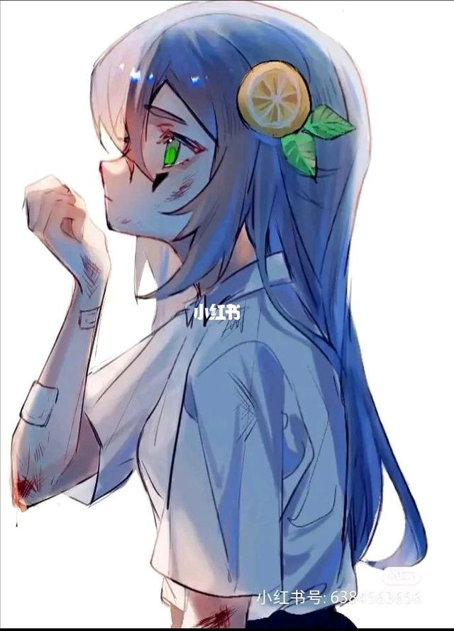 蓝色的头发凌乱的贴在刘海
