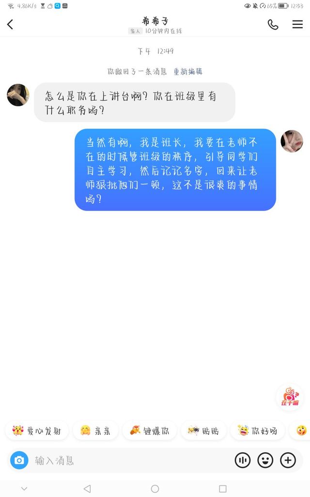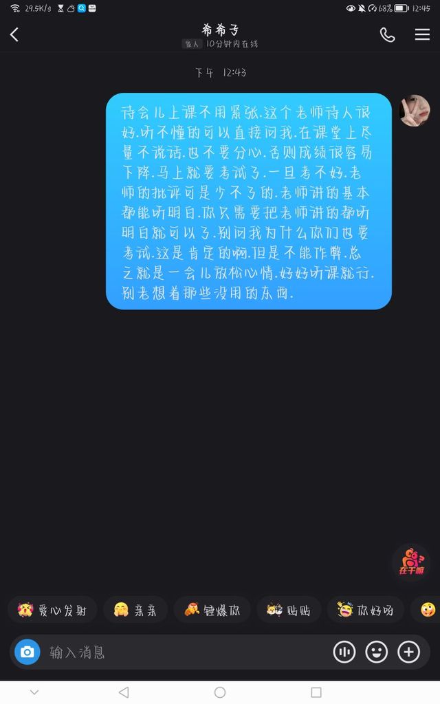 时希(看完了上面的字,点了点头,收回目光,静静的等待老师的出现)