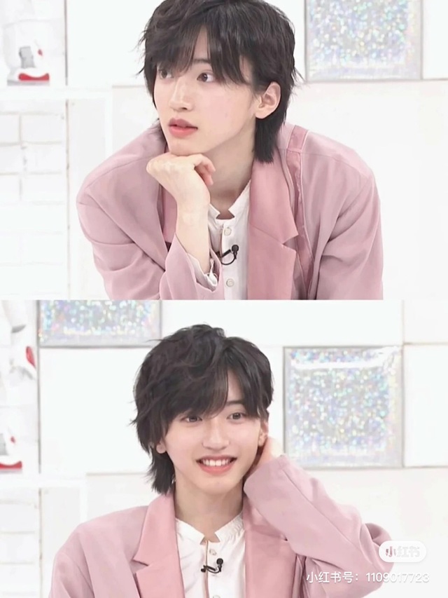 上身穿着的白色衬衫与粉色西装的搭配,看的少年更加白皙。微微修身的设计,凸显出了少年盈盈一握的细腰和纤细的长腿。
