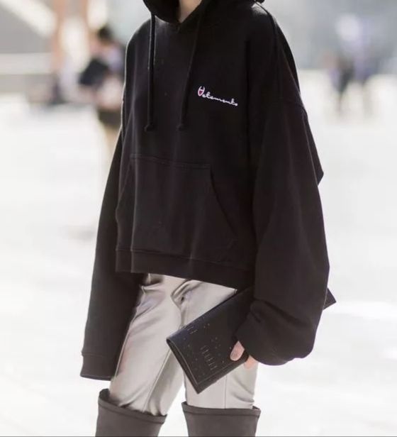 一身连帽长袖卫衣搭配一条灰色长裤,再来一双迷之靴子
