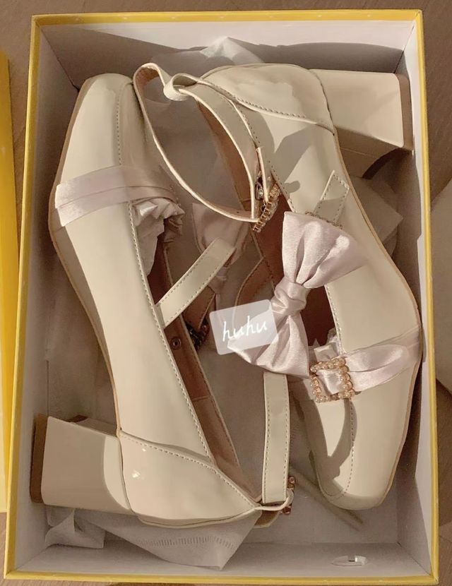 她穿着一身轻柔的粉色连衣裙,细节处点缀着精致的蕾丝和蝴蝶结,让人不禁想起那些优雅而温柔的记忆。 她的鞋子也是色彩搭配得恰到好处,撞色的白色粗跟高跟鞋让她的每一步脚步都更加自信和坚定。 但最吸引人们的还是女孩那微微露出的创口贴脚后跟,仿佛在向人们展示着伤口的美丽,也向她自己的坚强致敬。