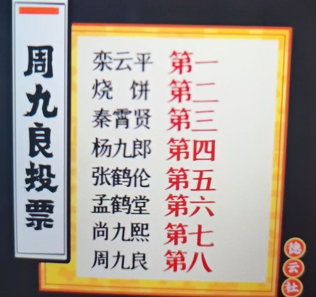 孟鹤堂这黑幕绝对栾云平第一名,然后饼哥作为儿徒第二名,秦霄贤流量第三名,我作品还行第四名,张鹤伦作品也还不错第五名,九良第六名,九郎第七名,九熙第八名