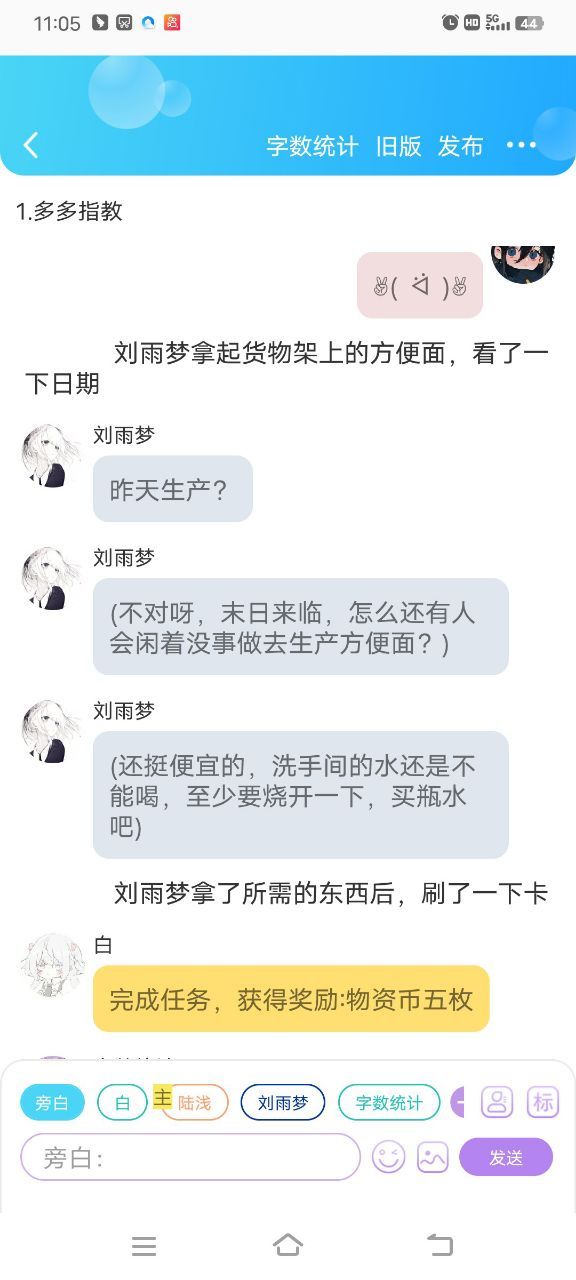 陆浅(巧克力顶饿…物资币不够,糖?好像没用…)