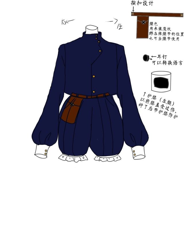 包的袋子应该是被上衣遮住的,但为了表示是绑在哪里我就画了出来