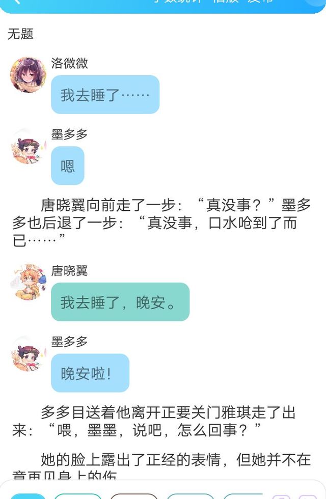 “怎么?嫌弃我?”说着伸手就要往雅琪身上抹,雅琪一下子跳了起来十分嫌弃的说道“咦~走开走开。我、我去睡觉了晚安。”她走的时候顺带把门关上了。