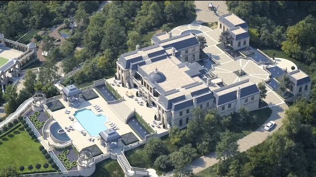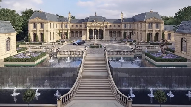 矗立在山头上的江家庄园规模十分宏观,外观也十分高端