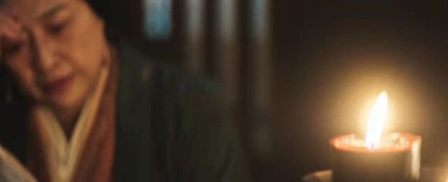 夜幕,烛火摇曳,程老夫人扶额倚在桌案上,泪水顺着眼角流下。程始端着一盘糕点走向程老太,跪在桌案面前,见阿母一脸忧伤,拿起块点心给她喂去。