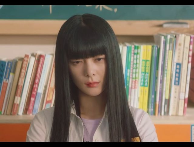 镜子里出现了一张女孩的脸,五官精致、眉眼酷飒,一副拽姐样,就是这厚重的刘海着实有点影响颜值。