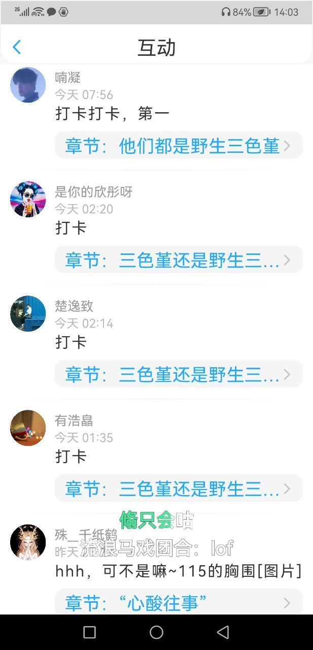 唔,补一句,非常非常感谢【江时鹤】的七日打卡和【云纵海亦】的五日打卡!我记得【江时鹤】送过100花花,应该加更过了吧嘿嘿