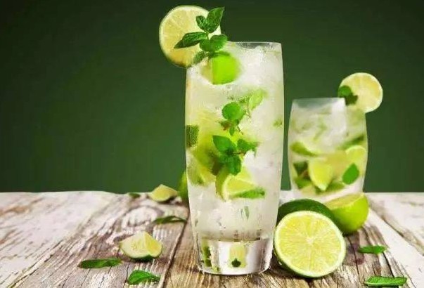 新鲜的青柠汁30毫升、新鲜的薄荷叶6-8片、糖浆20毫升、白色朗姆酒35毫升、中型冰块6-8块、苏打水