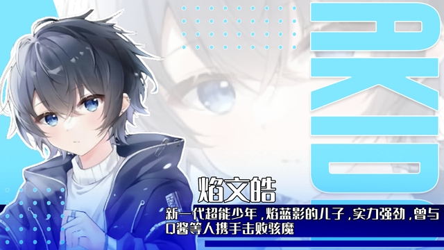 焰文皓,焰蓝影的儿子,新时代的超能少年,曾与Q酱等人携手击败骇魔,两人首次在《九主角互动大乱斗》中结识