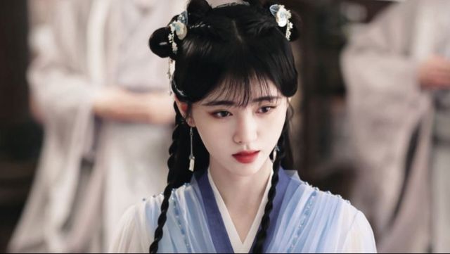 沁人肺腑的花香令人迷醉那百名美女有若绽开的花蕾 ,向四周散开,漫天花雨中,一个美若天仙的蓝衣少女,如空谷幽兰般出现