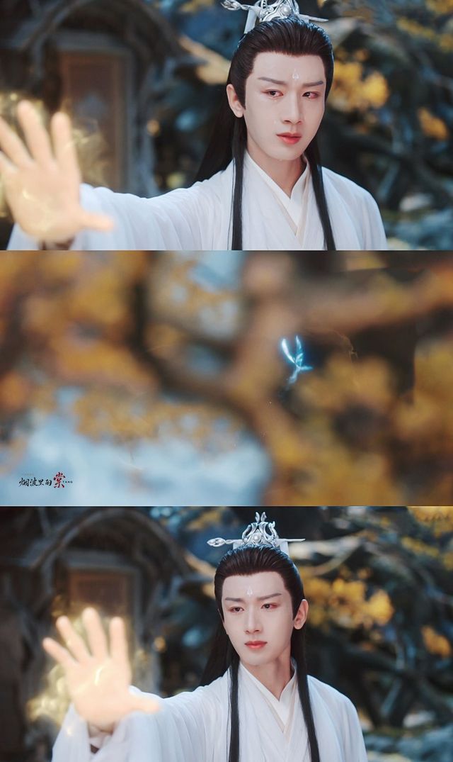 他目光追随眼前翩翩起舞的蝴蝶,试图将内心的痛楚压制。他缓慢地伸出手施法