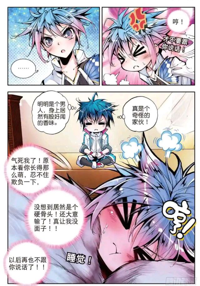 少年相貌清秀、皮肤白皙,一双大眼睛很特别,竟然是淡淡的粉蓝色。利落的短发亦是同色,英俊的相貌似乎比贝贝还要更甚几分,确实是霍雨浩见过的最好看的同龄人了。身高和年纪都和他差不多的样子。