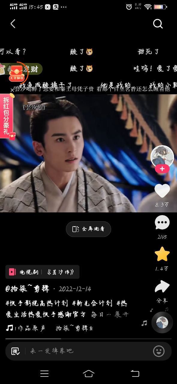 韩芸汐不多 三,三杯(边说着还边用手比着)