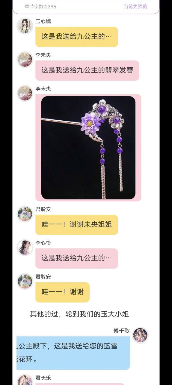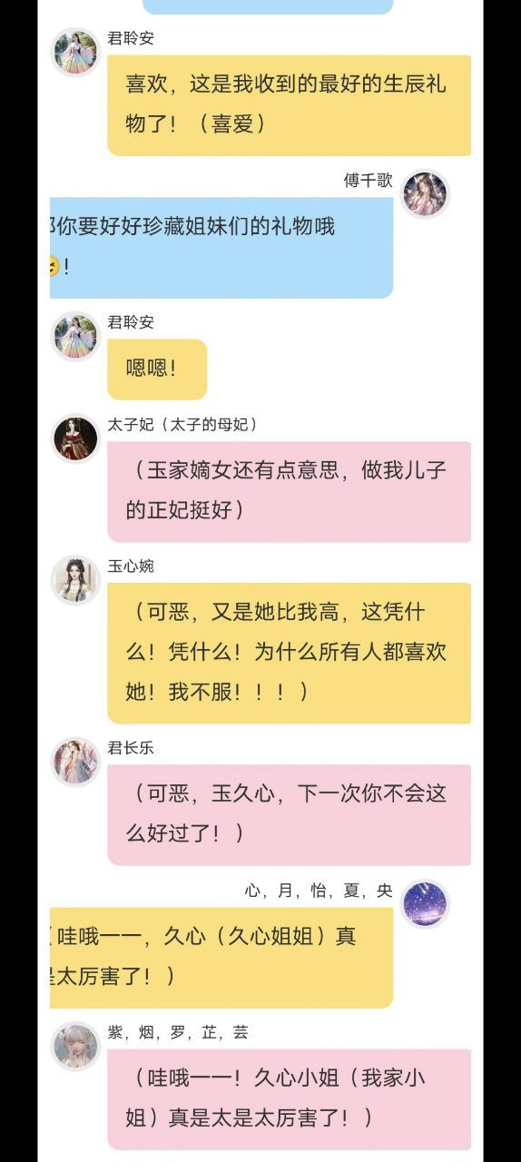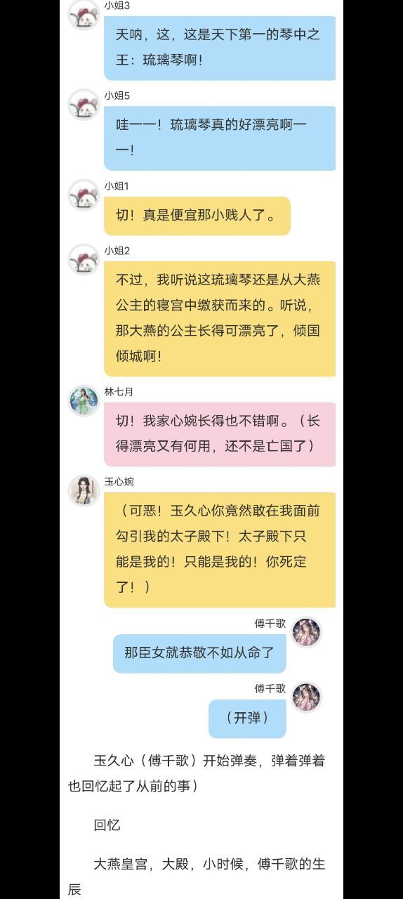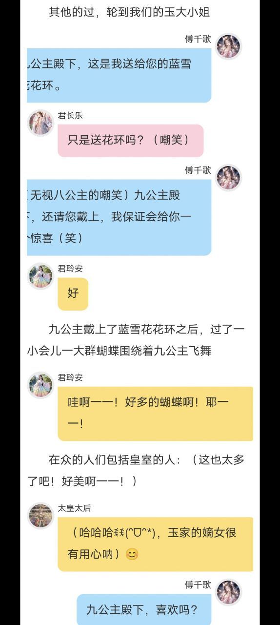 傅千歌(太好了,有殿下在 就不用被那些世家小姐议论了!😃)
