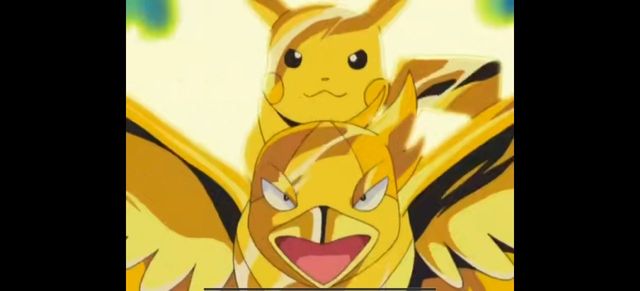 就在这时大王燕和皮卡丘撑了过来弹开了雷电。全身都是金色的。