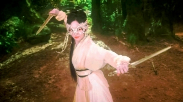 一把长剑忽然从半空之中飞过虎精为了躲避放开了那个姑娘 ,只见空中出现一名女子戴着面具落到地上又将长剑唤了回来握在手中