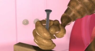 铁皮糟了 钉子没钉进去还把手给砸了