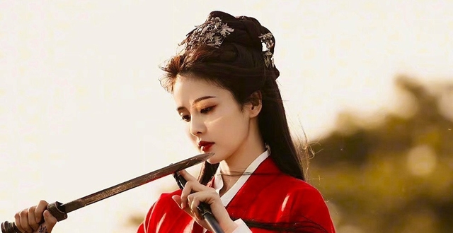 昏暗的房间里,一名男子正仔细擦拭着剑刃,身后却突然出现一名红衣女子,一根玉笛抵着他的脖子。