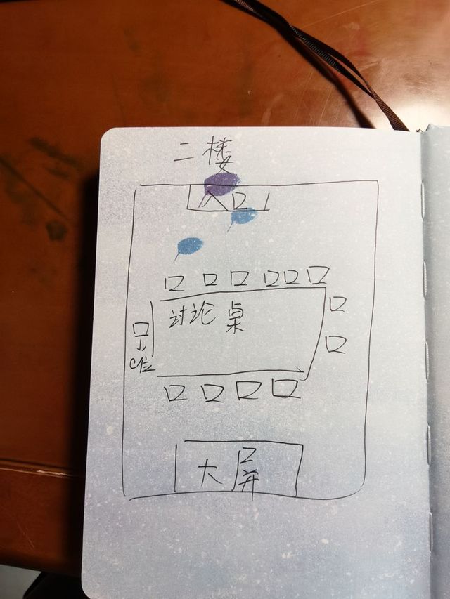 进去之后是一个办公室,正面有一个桌子,桌子的左侧有一张大桌子放着两台电脑面对面,再往他右角看,是一个被围起来的桌子,反正没有地方进去,上面也放着一个电脑,和一些便利贴