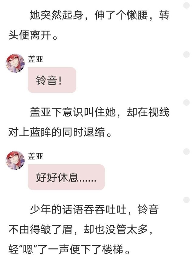 在盖亚叫着铃音的时候,我觉得他应该是想对铃音说我喜欢你之类的话,但他顿了顿,没有表明心意。