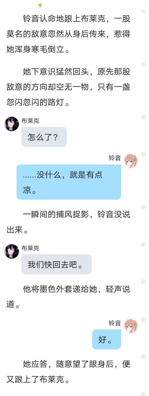在布莱克与铃音的剧情中,这段氛围满满,布莱克外冷内热的人设也在对铃音的行动中绽放出来,一开始是冰冷冷的,后面就小暖男上线,我磕!