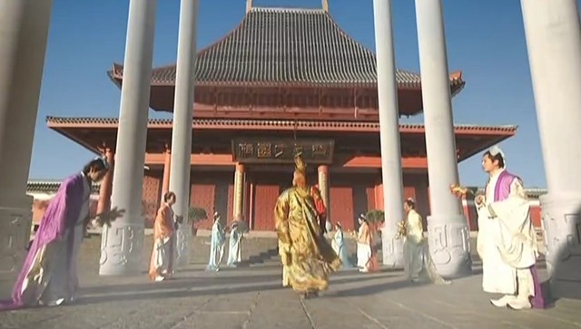 孙悟空兴致勃勃地来到了天庭敕造的齐天大圣府,门口两班仙侍守在两边,这精致的白壁殿堂有着一股凝神缥缈之意。