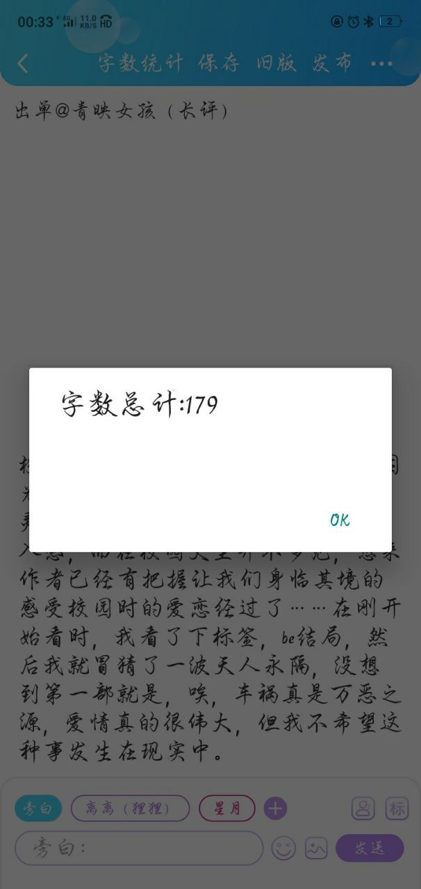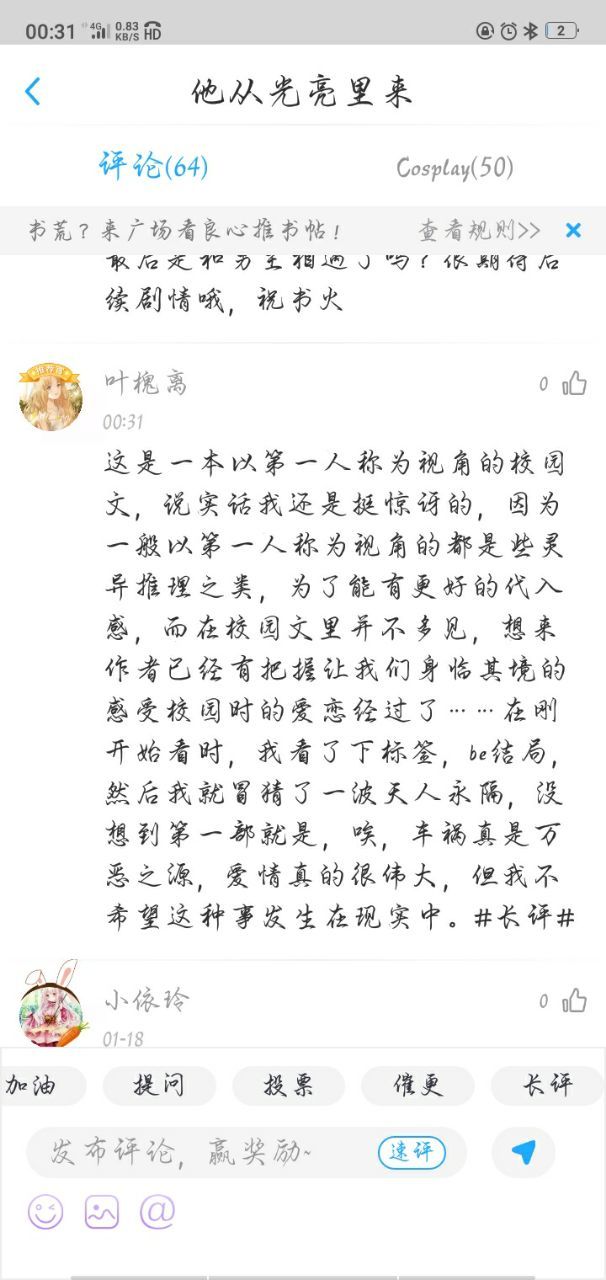 离离(狸狸)虽然我没想着凑字数,但这一百字感觉啥也没打,就又补了几十字,就当送的。