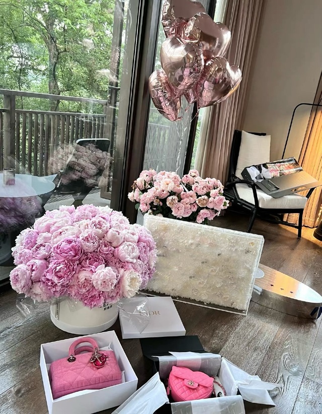 看见地上放了玫瑰花还有和他提了一次想要买的包包