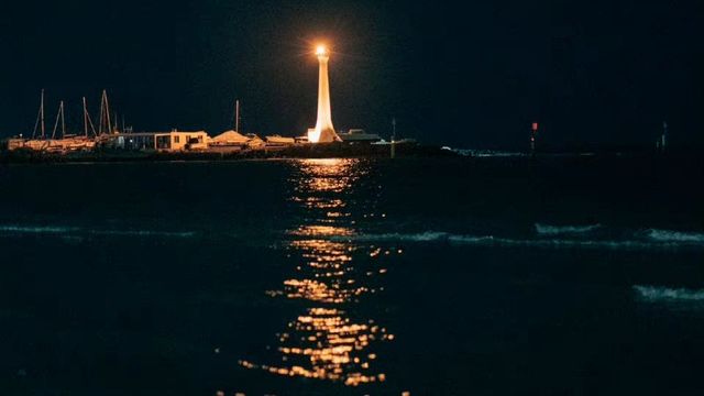 她靠着露台,静静地凝望着远方,整个世界被黑暗笼罩,只有远处炫目的灯光带来一抹朦胧的黄。