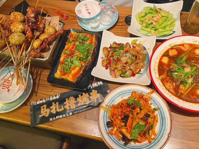 又买了些烤串,两个人找了一家店铺的包间,坐下来慢慢吃。