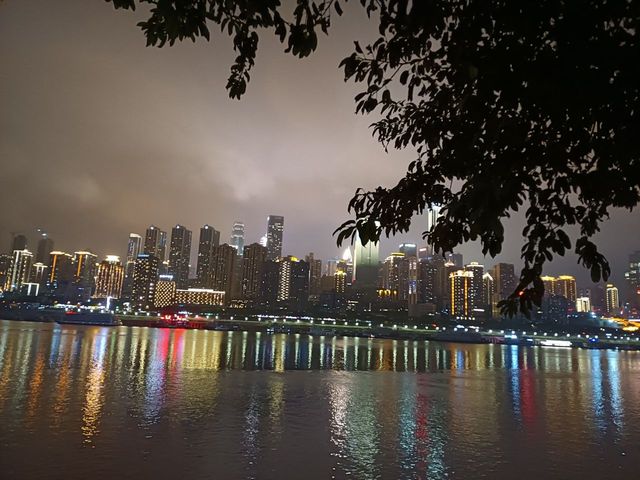 马嘉祺重庆的夜晚还是挺漂亮的,灯光倒映在江面。