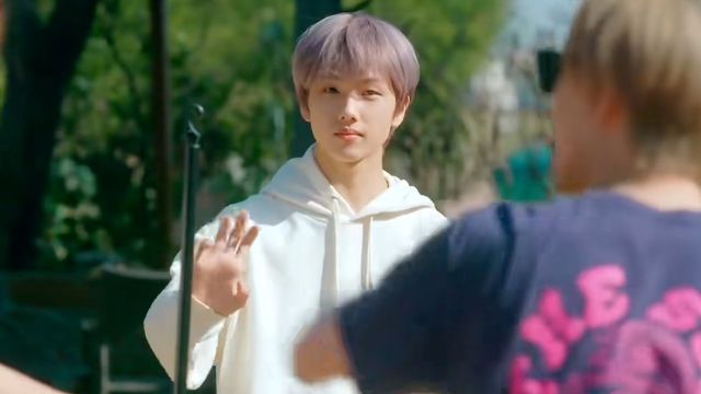 李楷灿抱着球,拽里拽气地向朴志晟逼近,我们的忙内有在努力威胁,